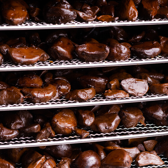 Разработка этого продукта заняла около года: цикл вызревания чёрного чеснока занимает 30-45 дней, ни один этап не допускает компромиссов по вкусу и качеству. В результате вы получаете премиальный продукт собственного производства с гарантией 100% натуральности и авторским контролем технологического процесса.