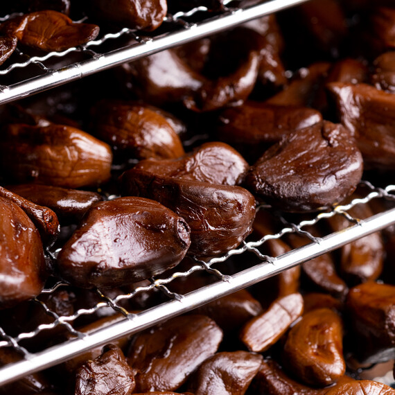 Разработка этого продукта заняла около года: цикл вызревания чёрного чеснока занимает 30-45 дней, ни один этап не допускает компромиссов по вкусу и качеству. В результате вы получаете премиальный продукт собственного производства с гарантией 100% натуральности и авторским контролем технологического процесса.