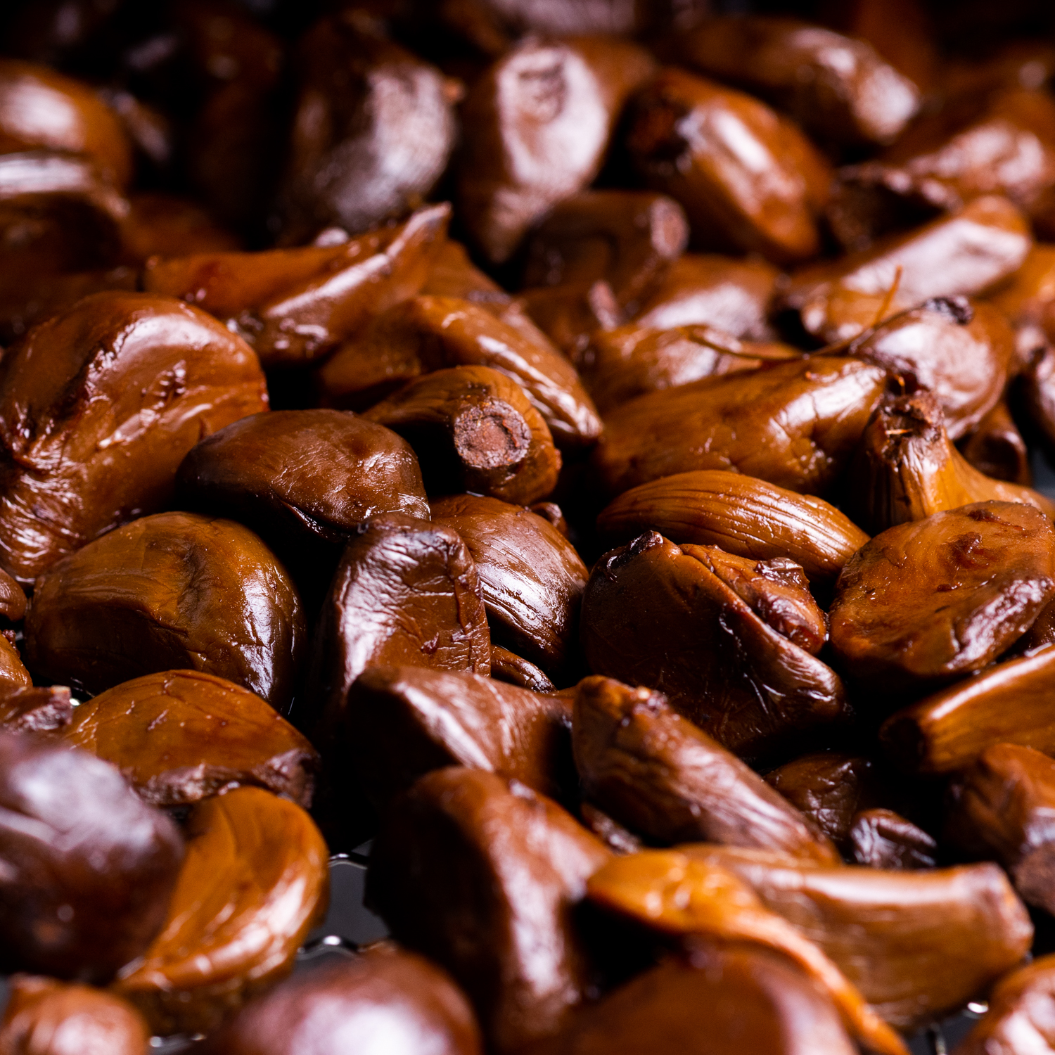 Мы разработали собственную технологию производства. В течение 30-45 дней в герметичной камере происходит особая ферментация отборных зубчиков чеснока. Выделяющийся сок циркулирует через конденсаторы, насыщаясь полезными веществами. На выходе мы получаем сразу два продукта: собственно черный чеснок и жидкий концентрат.
