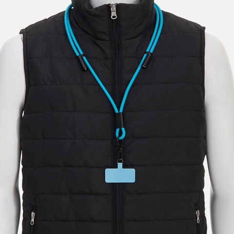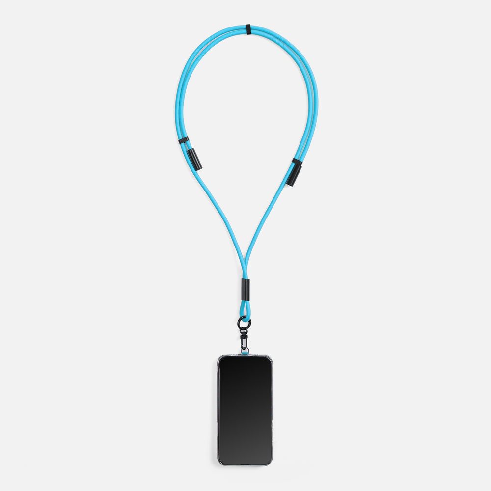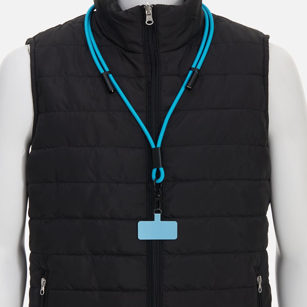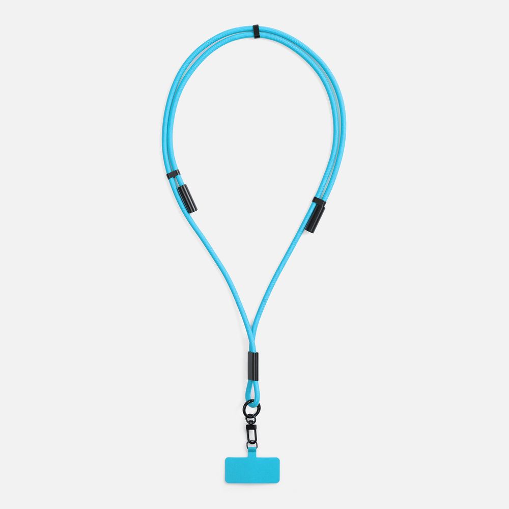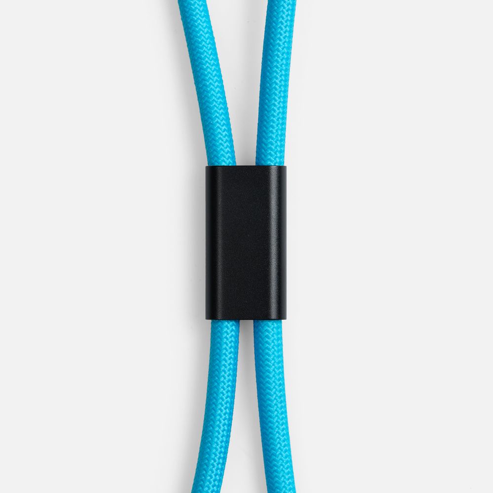 Важно: Для крепления кабеля телефон должен иметь чехол. Если ланьярд распускается под тяжестью смартфона, убедитесь, что среднее из трех колец фурнитуры находится по центру ланьярда (на шее под затылком), а не сбоку. Соседние ветви оплетки должны идти вместе, без зазоров, так достигается трение ткани о ткань.