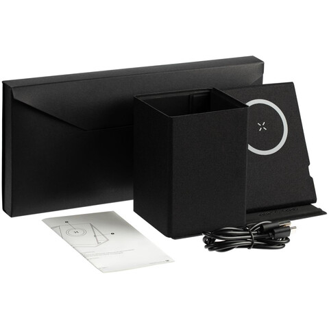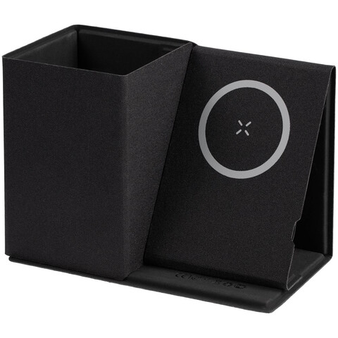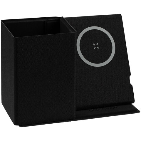 Компактный органайзер с отделением для хранения ручек и карандашей и беспроводной зарядкой.