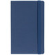 Блокнот в твердой обложке, выполнен из материала Soft Touch Pearl, синий НН, дополнен резинкой и ляссе в цвет обложки.
