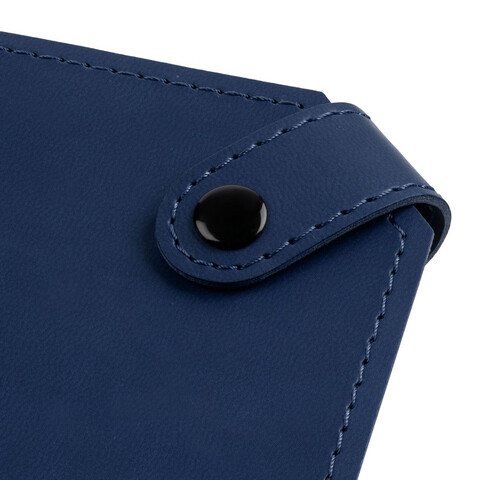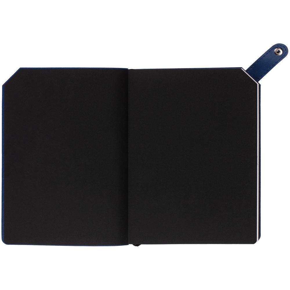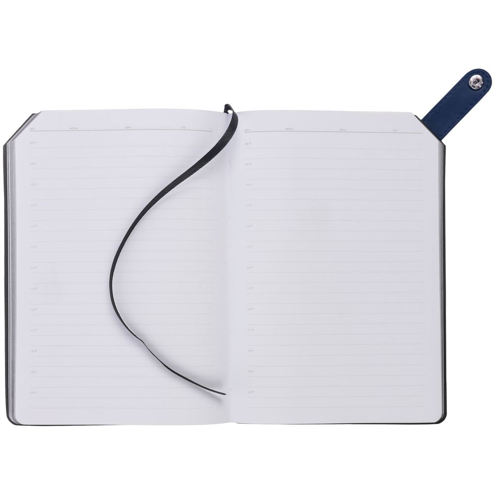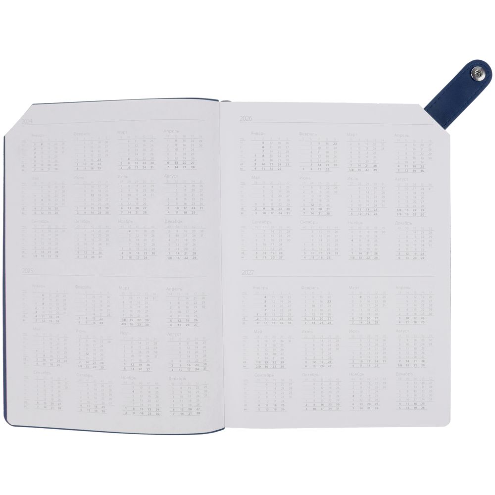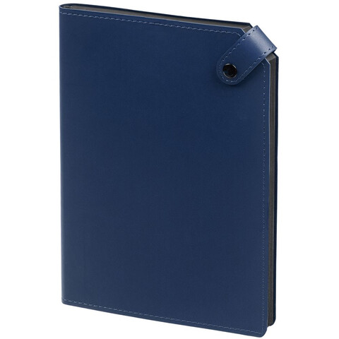 Ежедневник с гибкой обложкой и тонированным обрезом. Выполнен из материала Latte, темно-синий ХХ, дополнен черным ляссе.