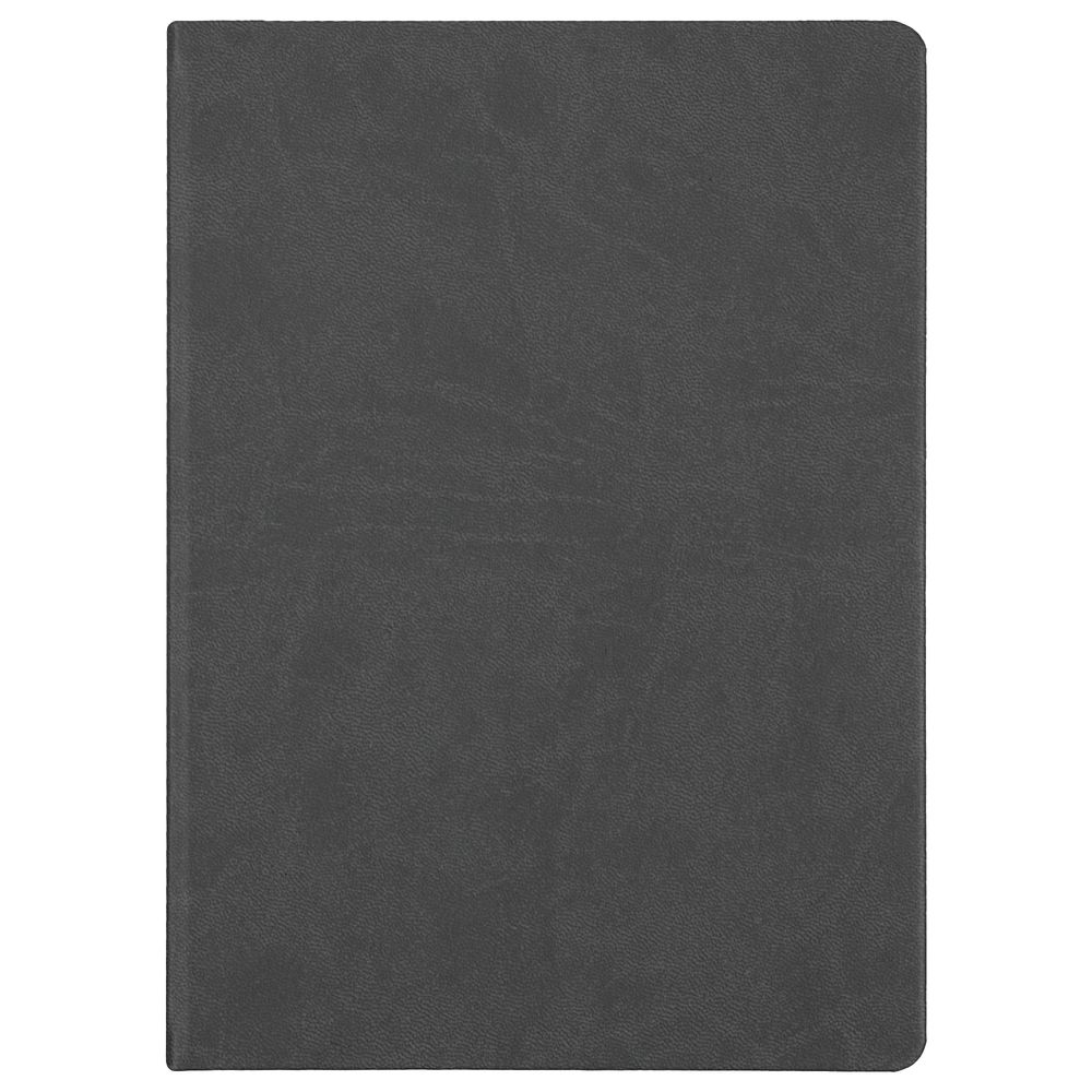 Ежедневник с твердой обложкой, выполнен из материала Latte, темно-серый ЕЕ, дополнен ляссе в цвет обложки.