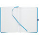 Ежедневник с твердой обложкой без поролона, выполнен из материала Soft Touch Ultra, голубой JJ, дополнен резинкой шириной 1 см, петлей-резинкой для ручки, капталом и ляссе голубого цвета.