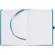 Ежедневник с твердой обложкой без поролона, выполнен из материала Soft Touch, цвет морской волны II, дополнен резинкой шириной 1 см, петлей-резинкой для ручки, капталом и ляссе темно-бирюзового цвета.