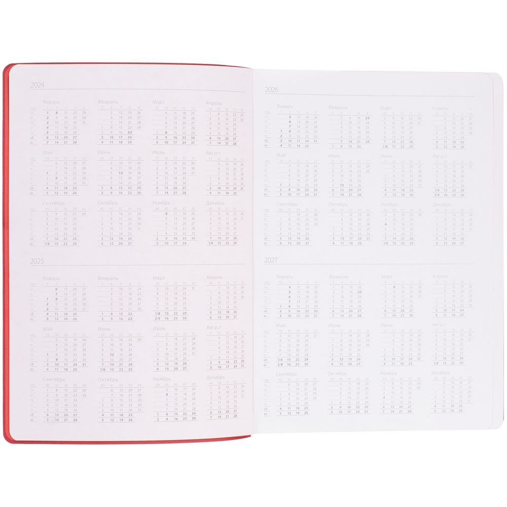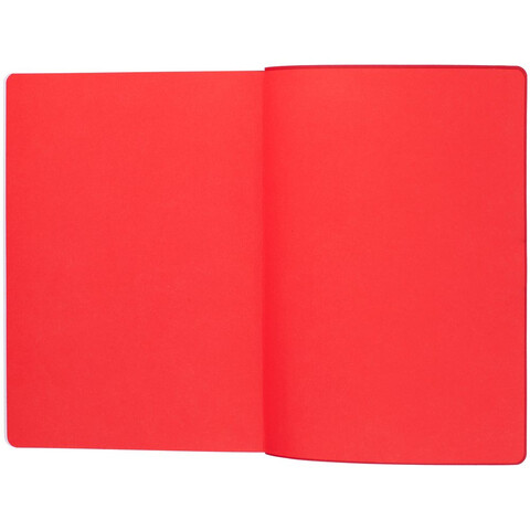 Гибкая обложка выполнена из материала Soft Touch Ultra, красный РР и Latte, красный РР (внутренняя часть обложки). Внутри корешка — специальное место для крепления ручки размером до 15х1 см.
