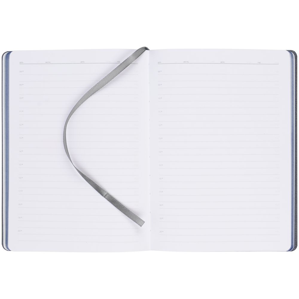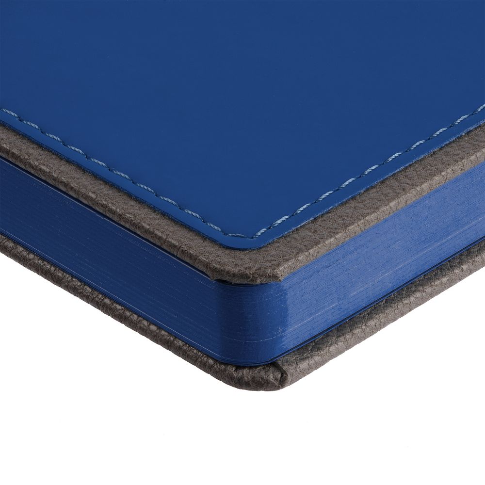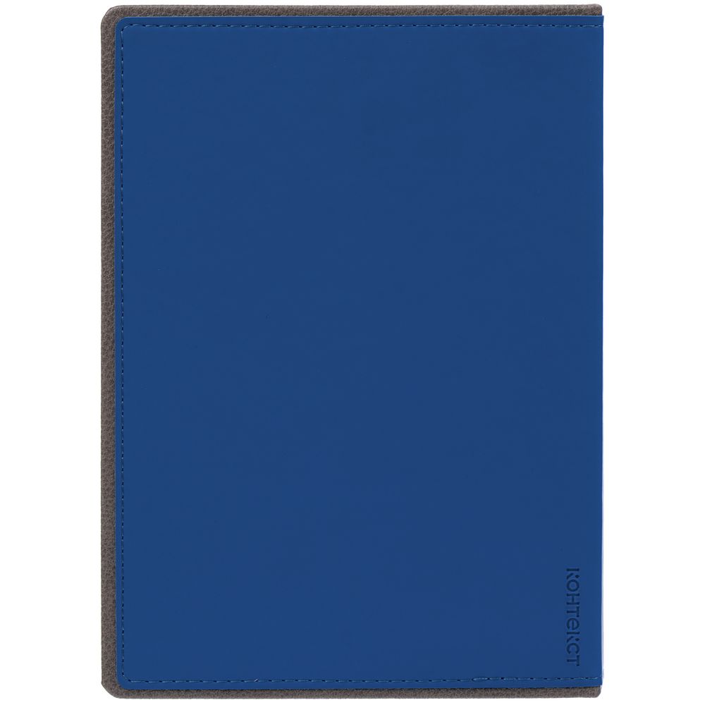 Ежедневник с твердой обложкой, выполнен из материалов Soft Touch Ultra, синий НН и La Fite, серый СС. Ляссе темно-серого цвета.