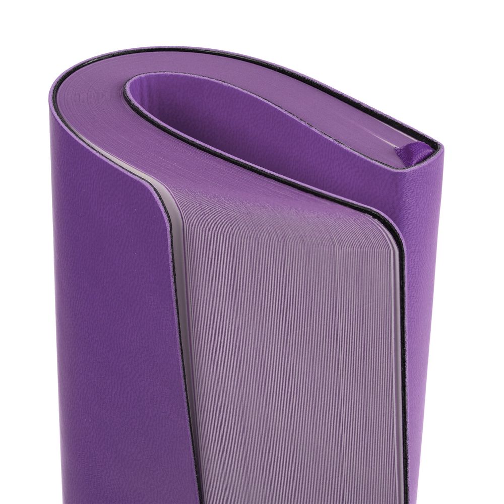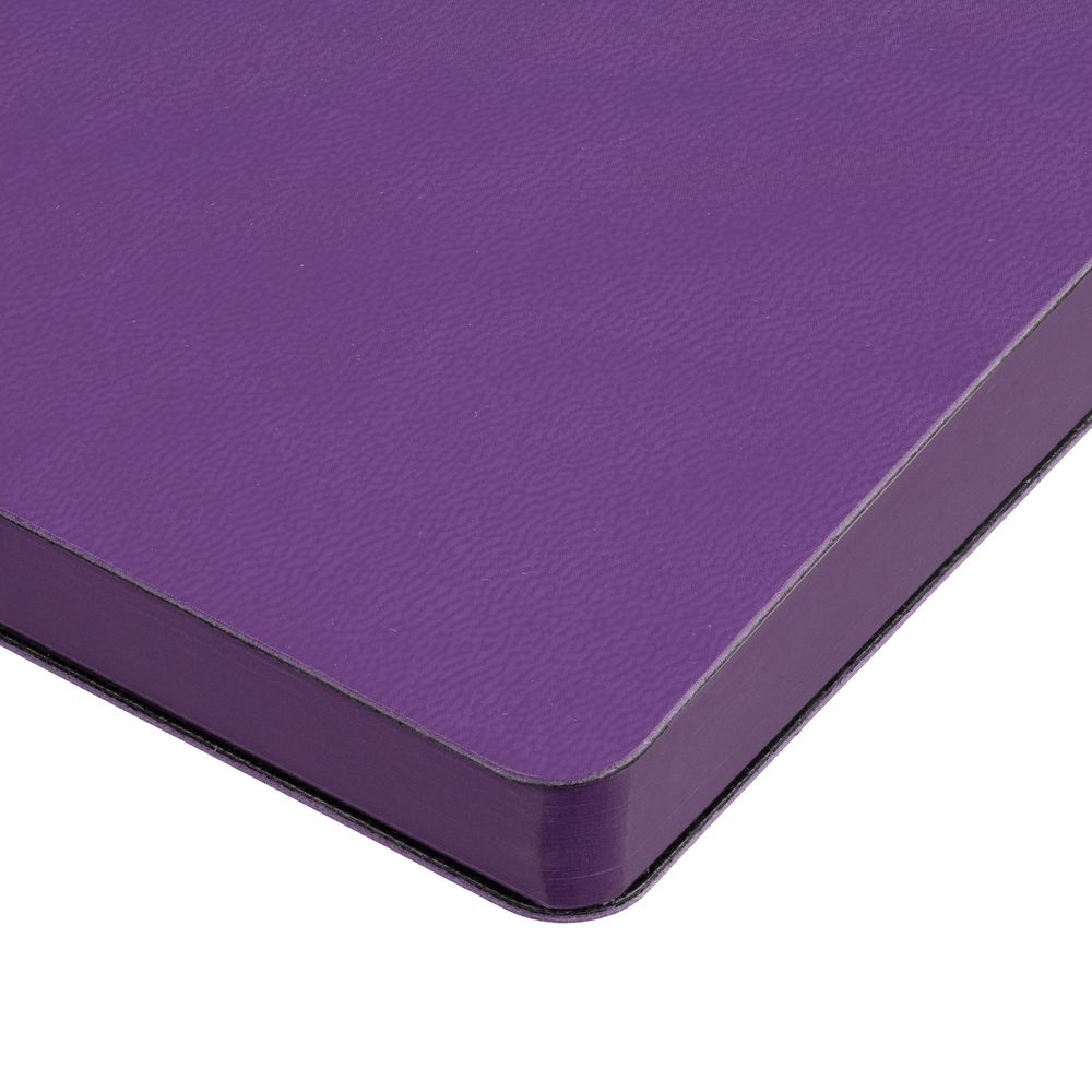 Ежедневник с гибкой обложкой, выполнен из материала Latte, фиолетовый, дополнен ляссе в цвет обложки.