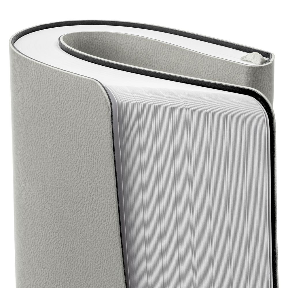 Ежедневник с гибкой обложкой, выполнен из материала Latte, серый, дополнен ляссе в цвет обложки.