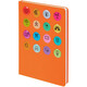 Обложка ежедневника из материала Soft Touch. На корешке обложки выполнено блинтовое тиснение, обложка дополнена вырубкой с печатью на бумаге и полимерными наклейками под смолой.