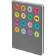 Обложка ежедневника из материала Soft Touch. На корешке обложки выполнено блинтовое тиснение, обложка дополнена вырубкой с печатью на бумаге и полимерными наклейками под смолой.