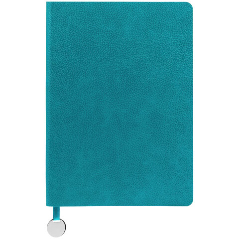 Ежедневник с гибкой обложкой, выполнен из материал La Fite, цвет морской волны II, дополнен ляссе в цвет обложки с металлическим шильдом.