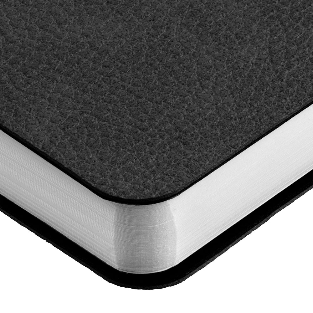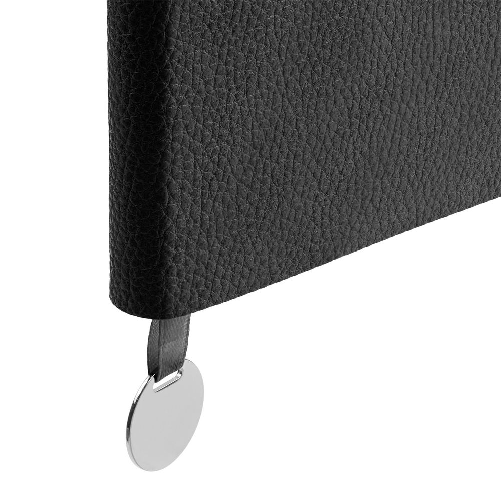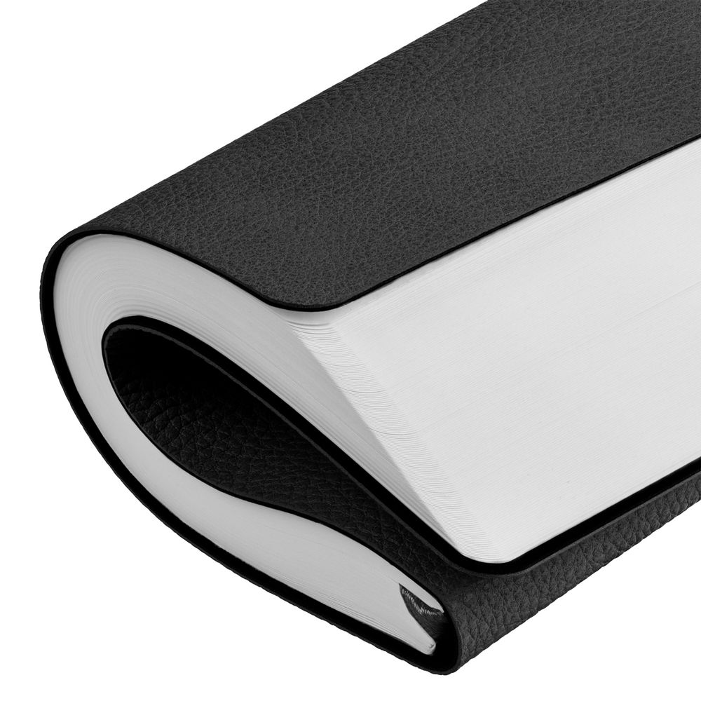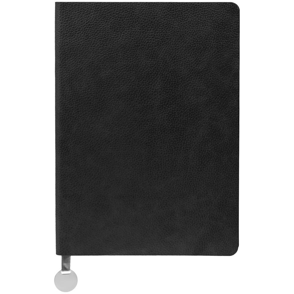Ежедневник с гибкой обложкой, выполнен из материала La Fite, черный АА, дополнен ляссе в цвет обложки с металлическим шильдом.