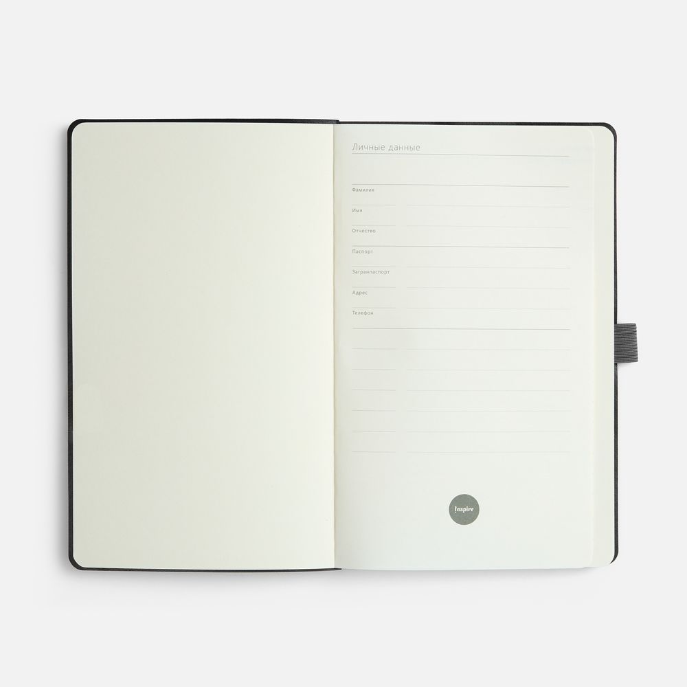 Ежедневник с гибкой обложкой, выполнен из материала Espresso, дополнен цветными ляссе и петлей-резинкой для ручки.