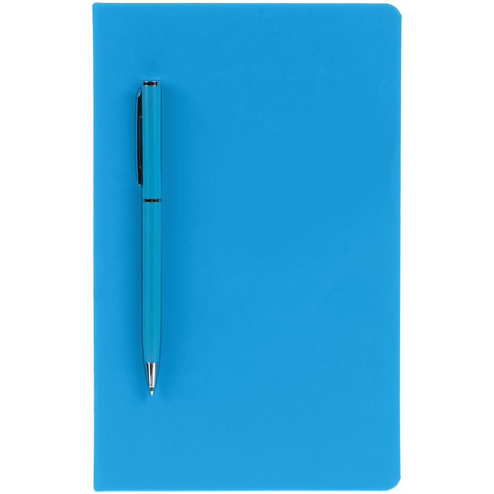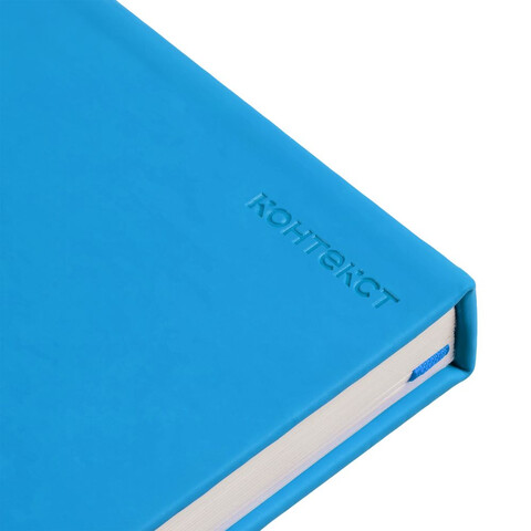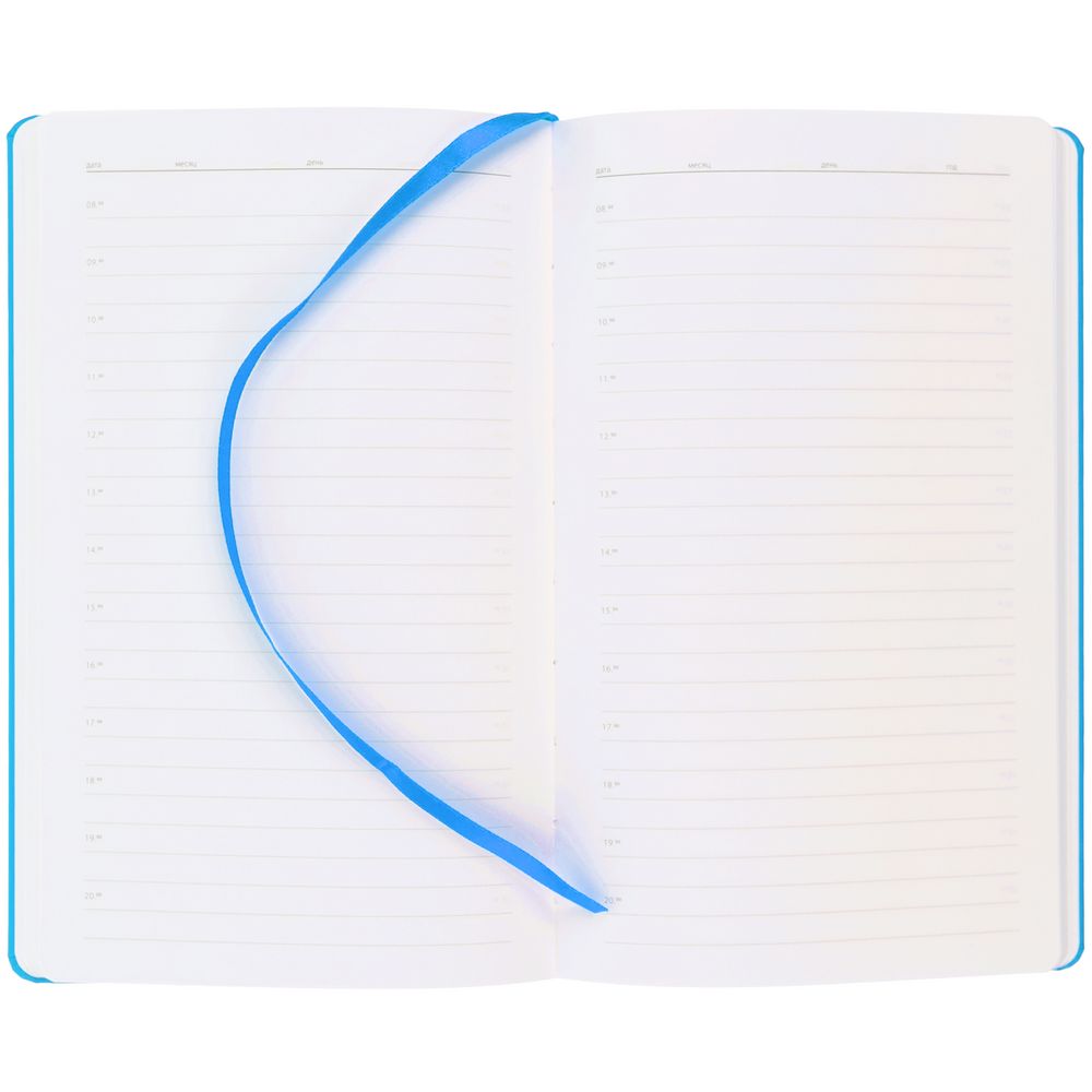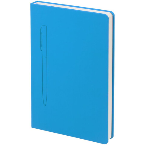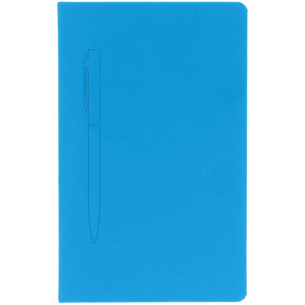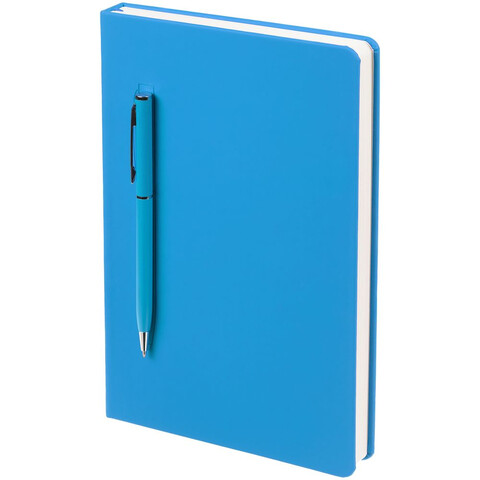 Ежедневник в твердой обложке, выполненной из материала Soft Touch Ultra, голубой JJ, дополнен атласным ляссе и магнитом, удерживающим ручку.