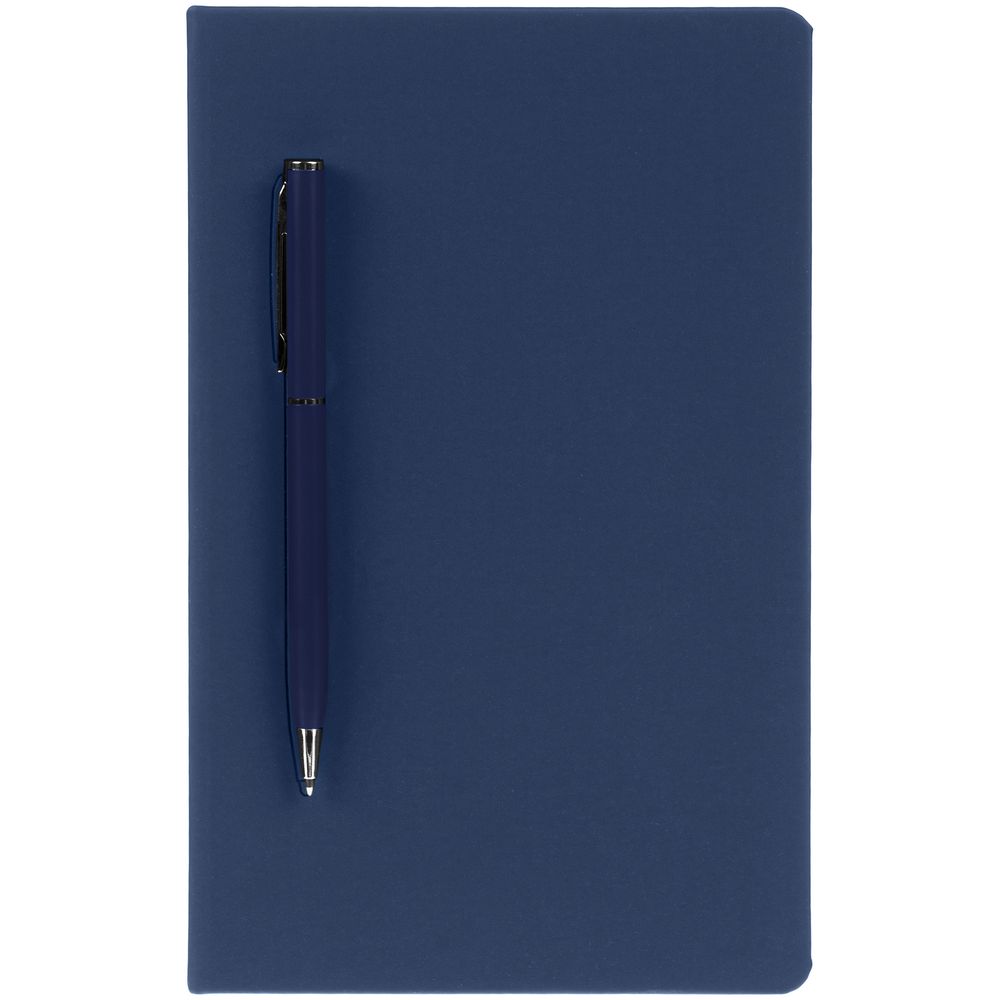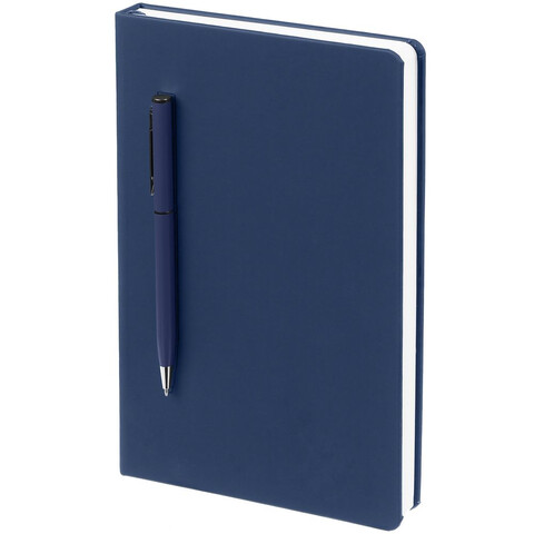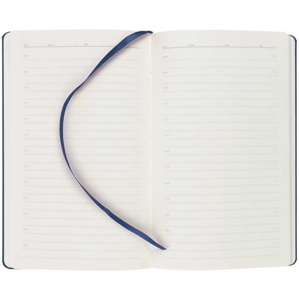 Ежедневник в твердой обложке, выполненной из материала Soft Touch Pearl, синий НН, дополнен цветным ляссе и магнитом, удерживающим ручку.