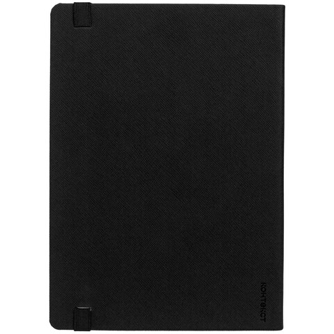 Ежедневник с полутвердой обложкой выполнен из материала Nice Touch, черный АА, и дополнен резинкой шириной 1 см с металлическим шильдом и ляссе черного цвета.