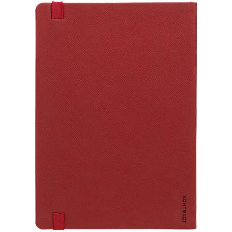 Ежедневник с полутвердойобложкой выполнен из материала Nice Touch, красный PP, и дополнен резинкой шириной 1 см с металлическим шильдом и ляссе красного цвета.