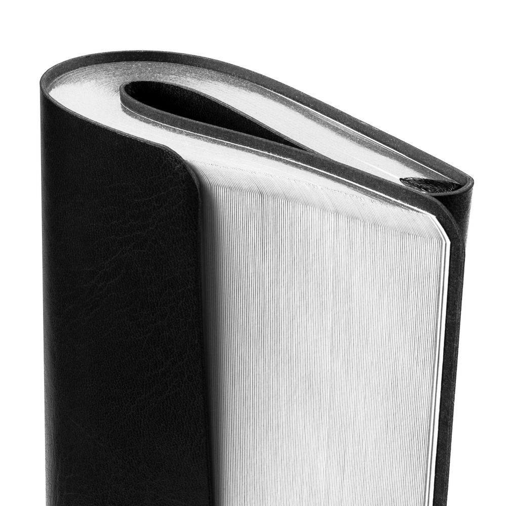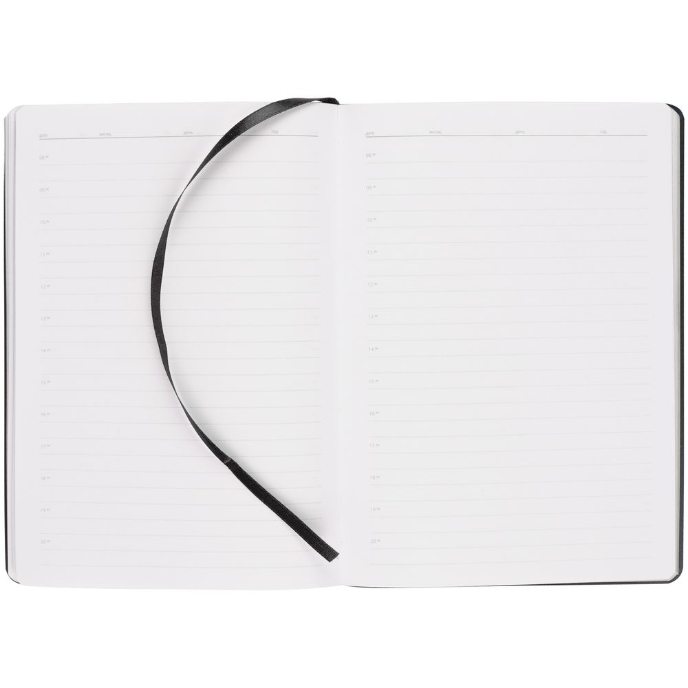 Ежедневник с гибкой обложкой, выполнен из материала Nebraska, черный АА, дополнен ляссе черного цвета.
