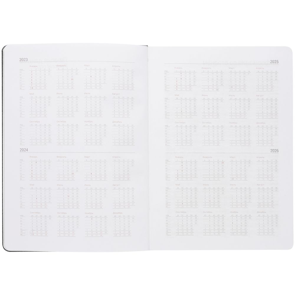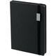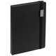Ежедневник с твердой обложкой, выполнен из материала Latte, черный АА, обрез черного цвета, дополнен ляссе черного цвета и резинкой с металлическим шильдом.