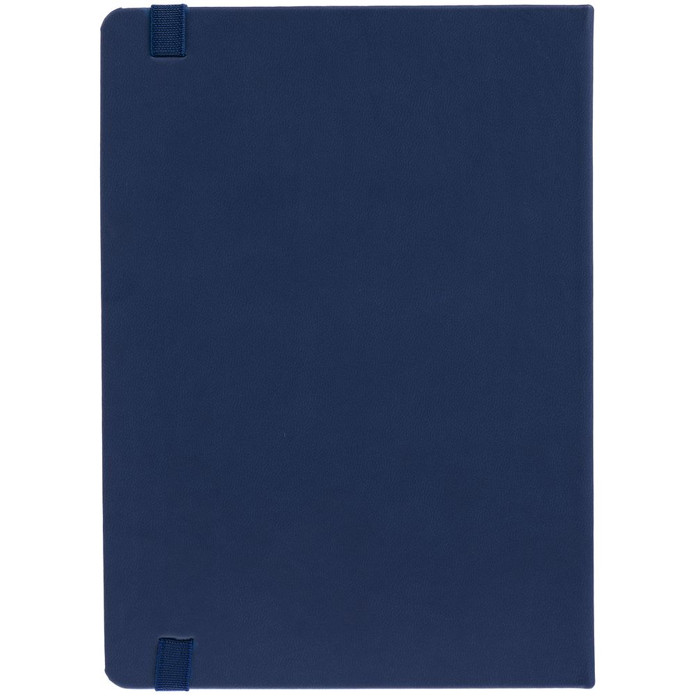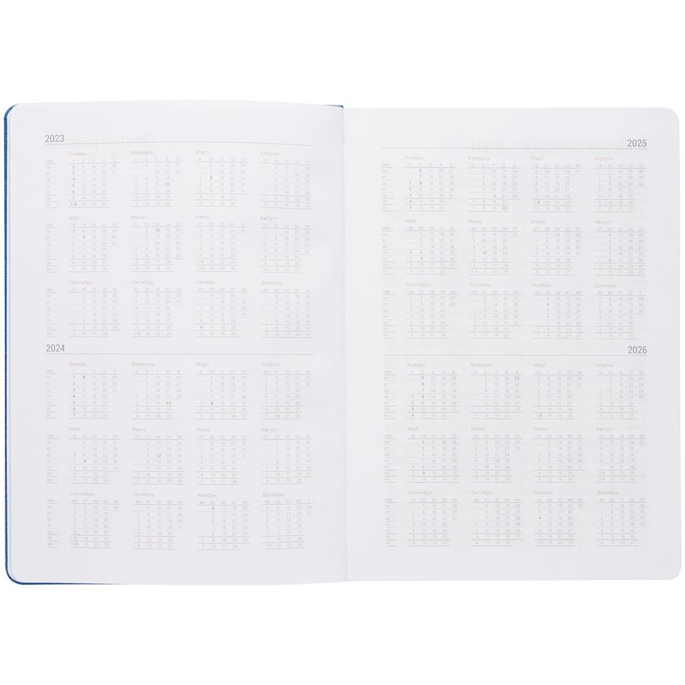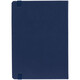 Ежедневник с твердой обложкой, выполнен из материала Latte, темно-синий ХХ, обрез темно-синего цвета, дополнен ляссе темно-синего цвета и резинкой с металлическим шильдом.