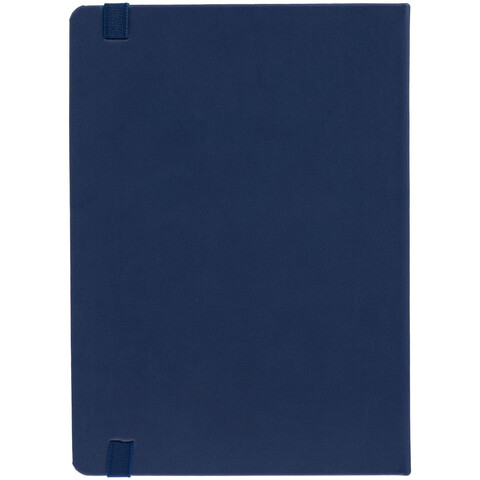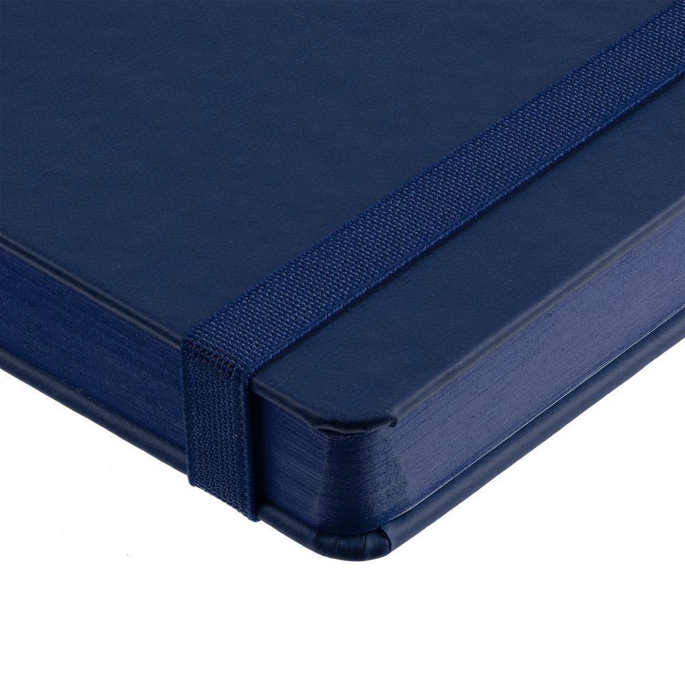 Ежедневник с твердой обложкой, выполнен из материала Latte, темно-синий ХХ, обрез темно-синего цвета, дополнен резинкой и ляссе темно-синего цвета.