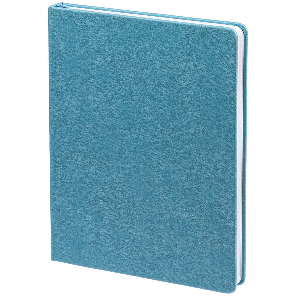 Ежедневник с твердой обложкой. Выполнен из материала Latte, голубой, дополнен ляссе в цвет обложки.