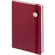 Ежедневник с твердой обложкой, выполнен из материала LaFite, красный РР, дополнен резинкой с металлическим круглым шильдом и ляссе в цвет обложки.