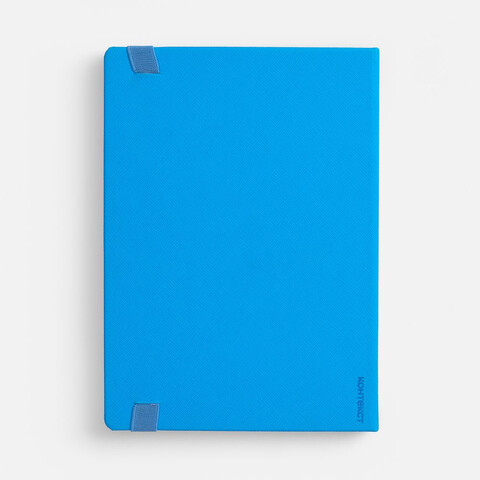 Ежедневник с твердой обложкой, выполнен из материала Nice Touch, голубой JJ, дополнен резинкой с шильдой из материала Soft Touch Ultra и ляссе в цвет обложки.