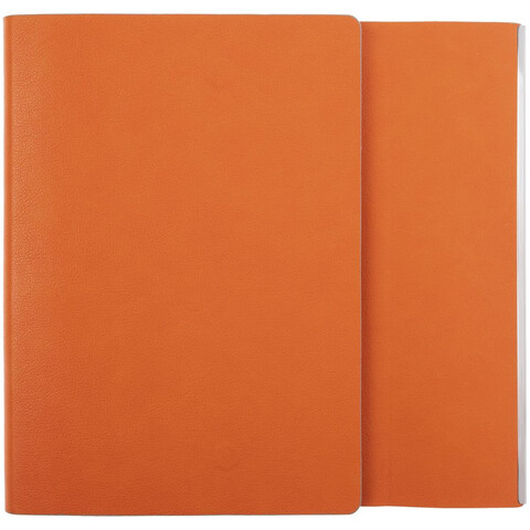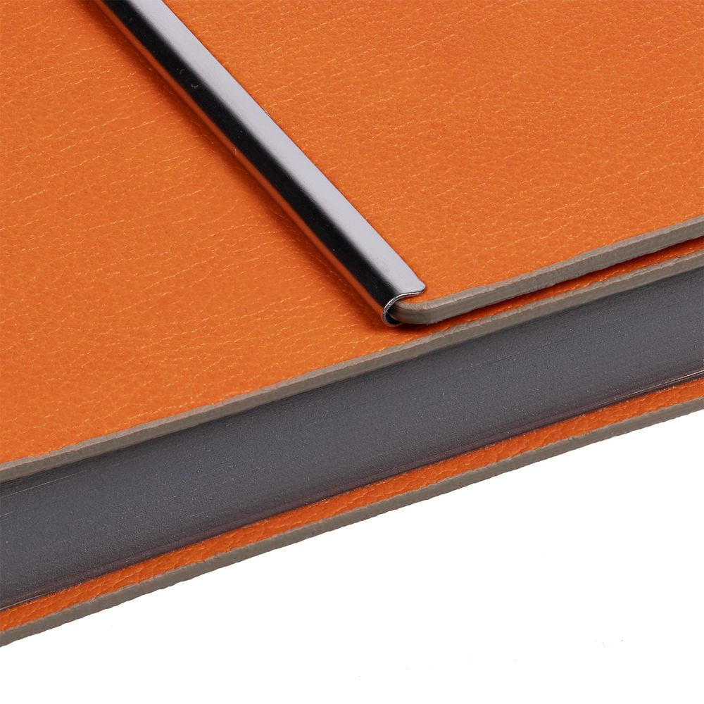 Ежедневник с гибкой обложкой, клапаном на магните и металлической отделкой клапана. Выполнен из материала Petrus, оранжевый ОО, дополнен серым ляссе.