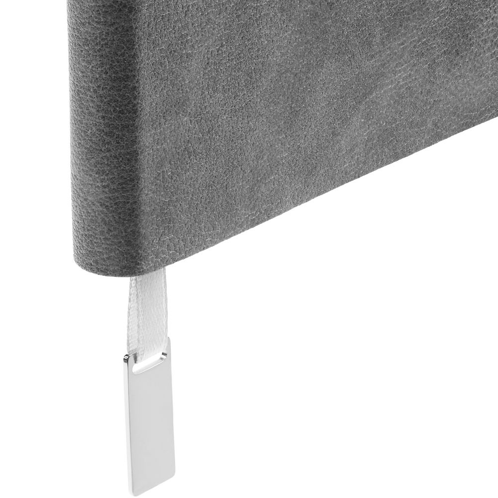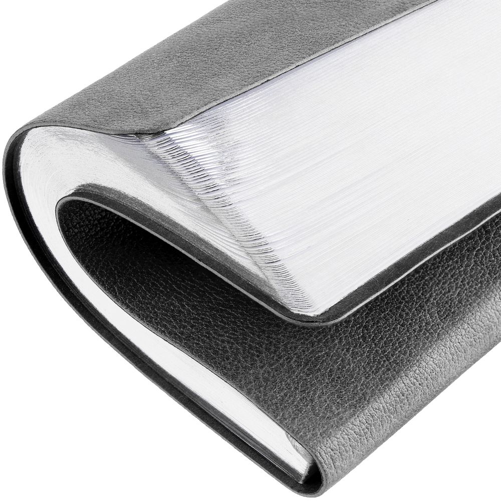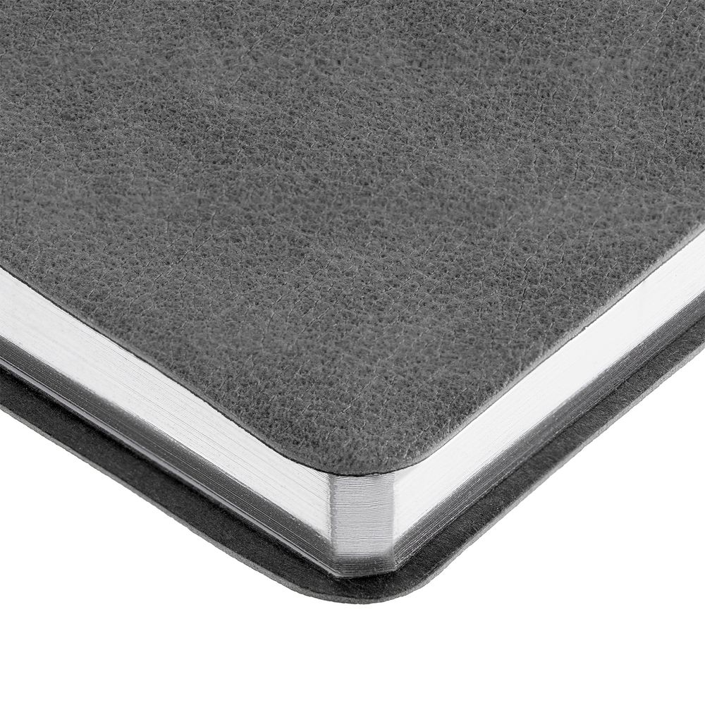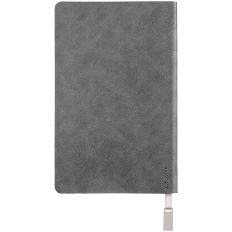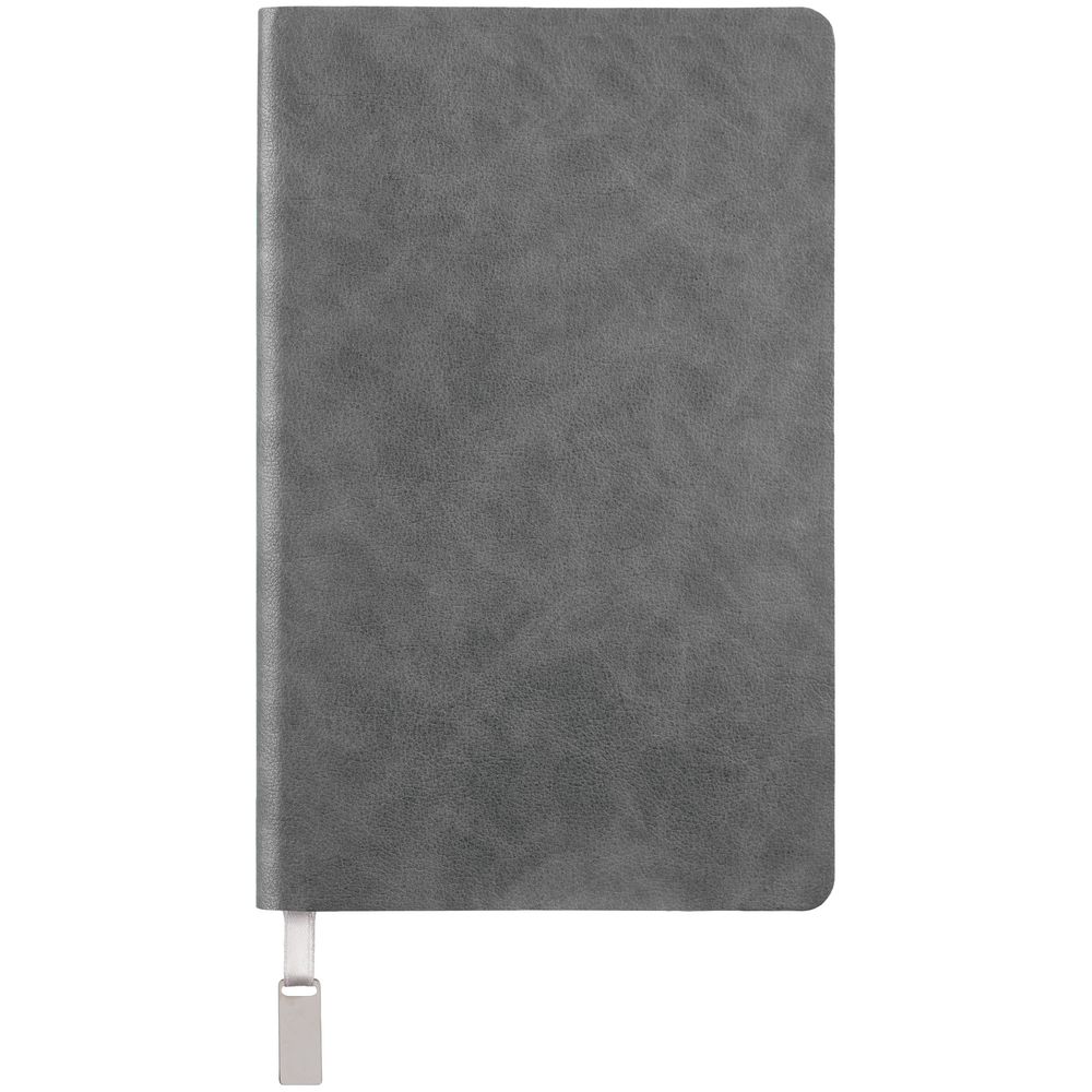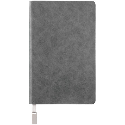 Ежедневник с гибкой обложкой, выполнен из материала Petrus, серый СС, дополнен серым ляссе с металлическим шильдиком.