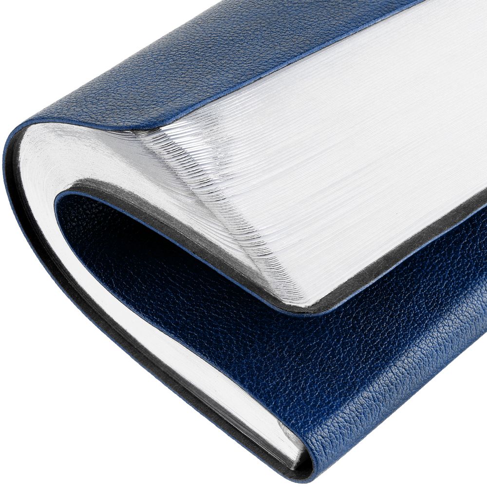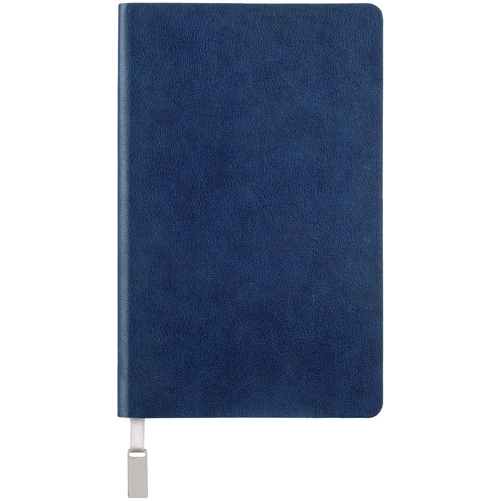 Ежедневник с гибкой обложкой, выполнен из материала Petrus, синий НН, дополнен серым ляссе с металлическим шильдиком.