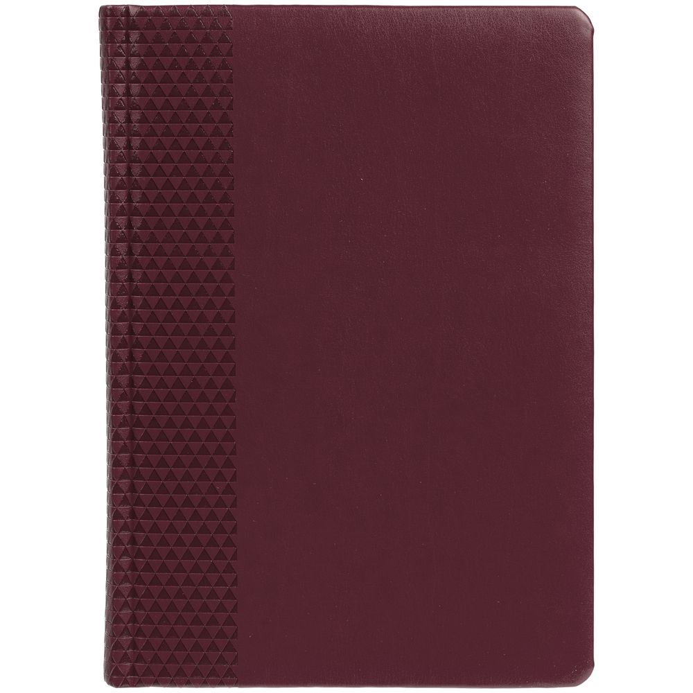 Ежедневник с твердой обложкой, выполнен из материала Waltz, бордовый QQ, дополнен ляссе в цвет материала.