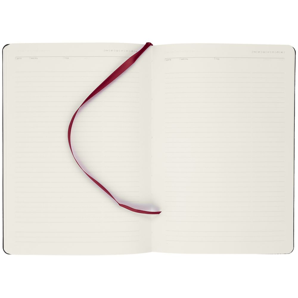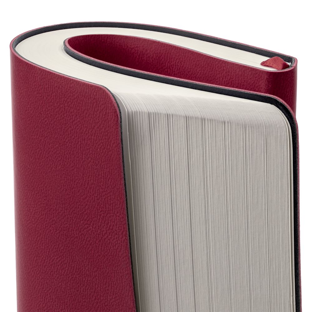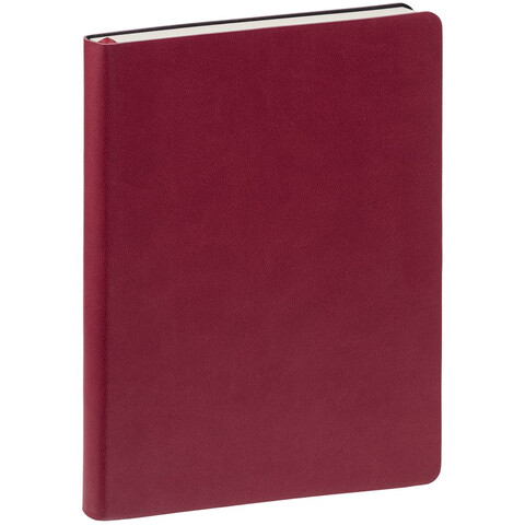 Ежедневник с гибкой обложкой, выполнен из материала Latte, бордовый, дополнен ляссе в цвет обложки.