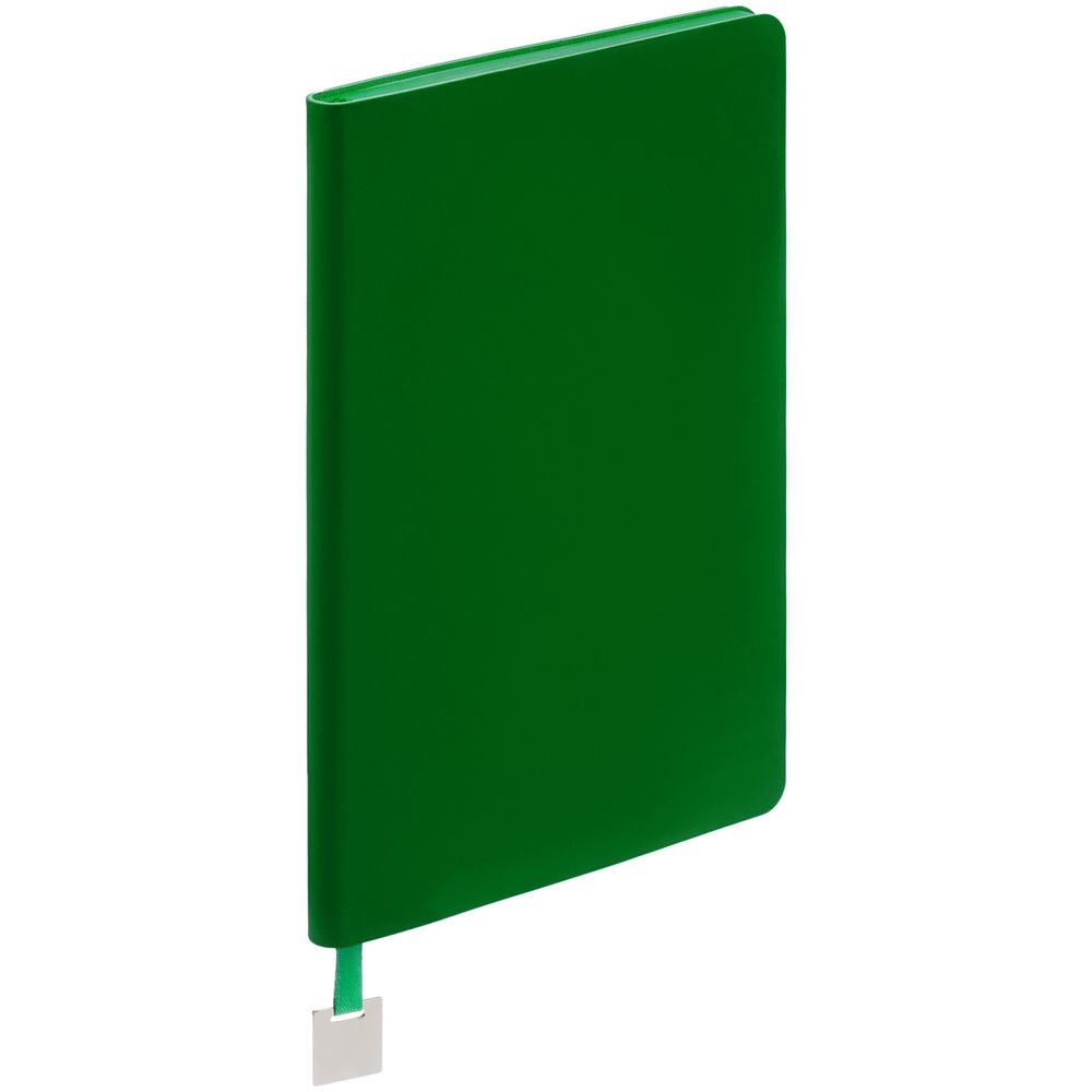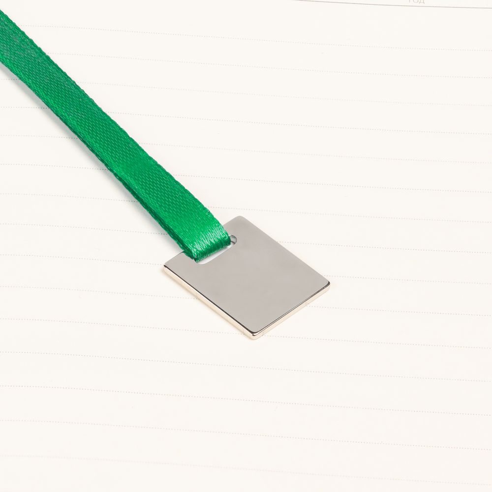 Ежедневник с гибкой обложкой, выполнен из материалов Soft Touch Ultra, зеленый FF, и Latte, зеленй (внутренняя часть обложки), дополнен ляссе в цвет обложки с металлическим шильдиком.