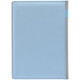 Твердая обложка с поролоном, материал обложки — Soft Touch, голубой JJ и Soft Touch, серый СС. На корешке ежедневника находится петля из резинки.