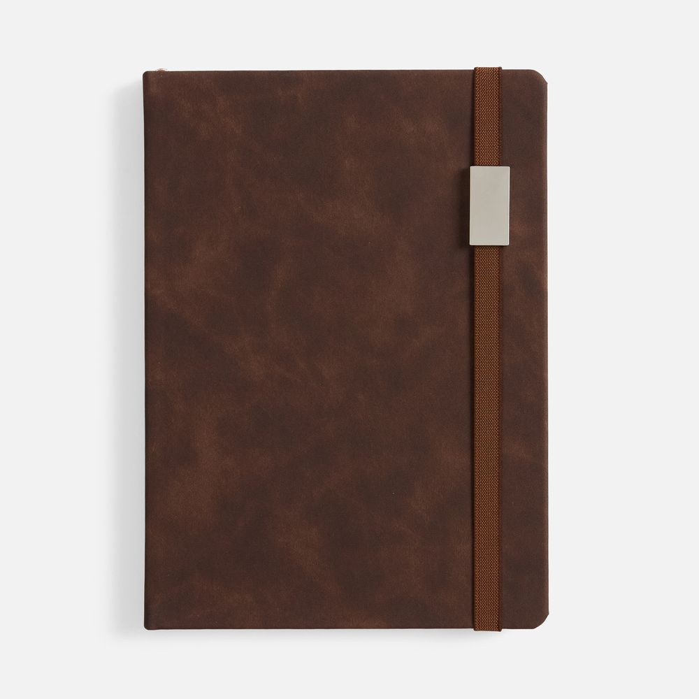 Ежедневник с твердой обложкой, выполнен из материала Nubuck Touch, темно-коричневый ZZ, дополнен ляссе темно-коричневого цвета.