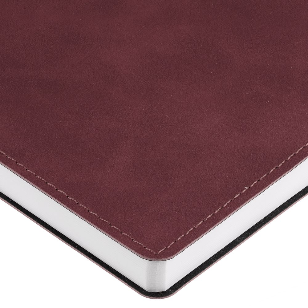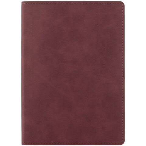 Ежедневник с гибкой обложкой, выполнен из материала Nubuck Touch, винный SS, дополнен ляссе в цвет обложки.