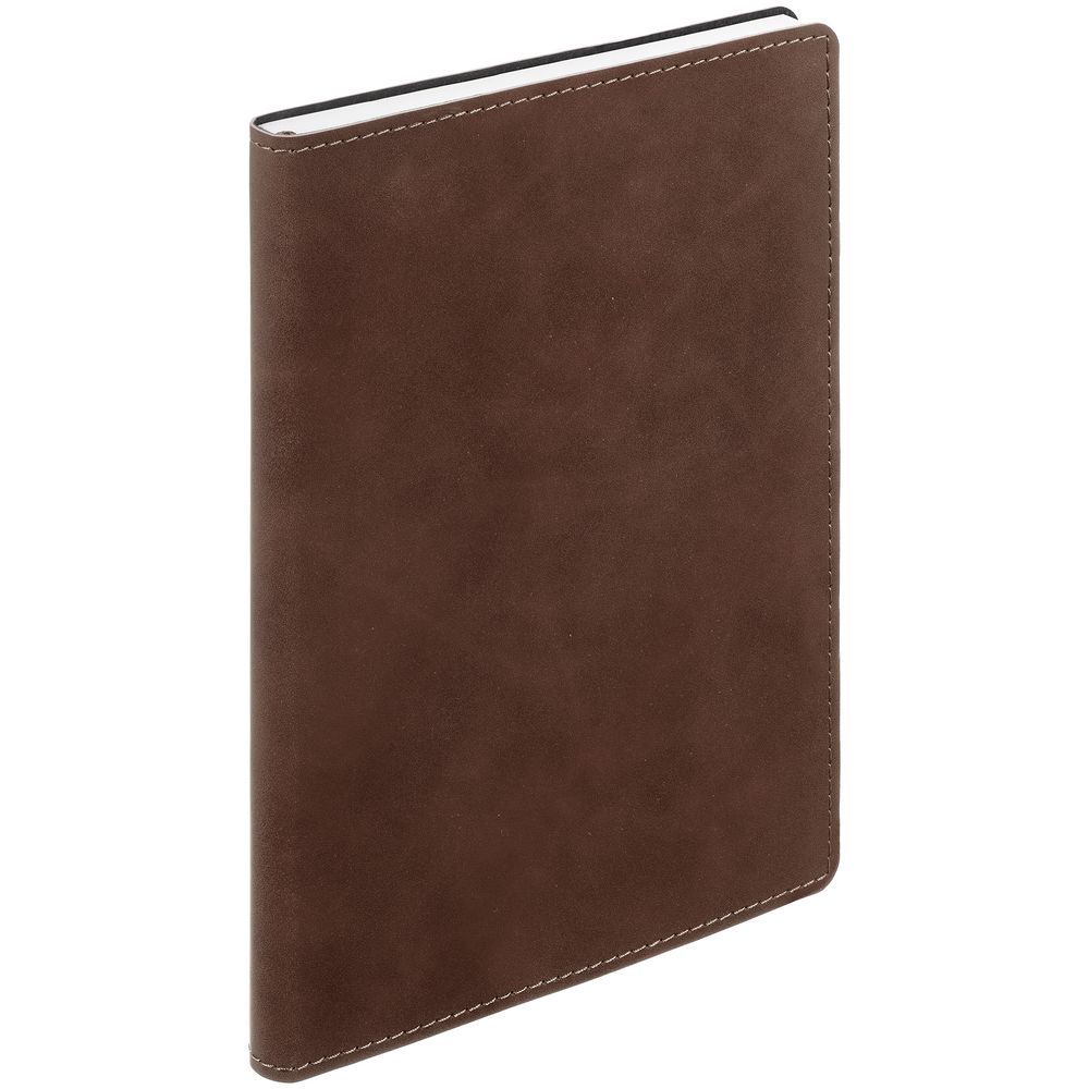 Ежедневник с гибкой обложкой, выполнен из материала Nubuck Touch, темно-коричневый ZZ, дополнен ляссе темно-коричневого цвета.