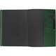 Ежедневник в суперобложке выполнен из материала La Fite, зеленый FF, дополнен ляссе и капталом черного цвета.