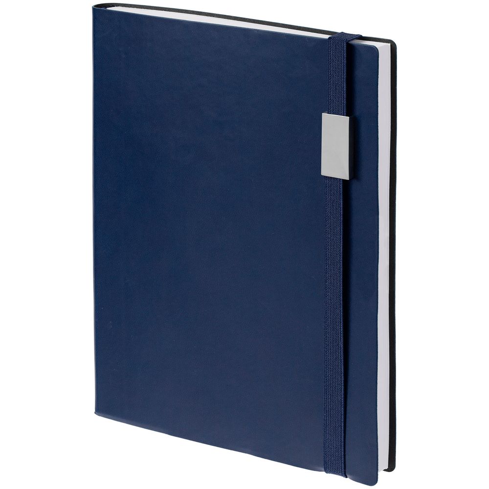 Ежедневник с гибкой обложкой, выполнен из материала Latte, темно-синий XX, дополнен резинкой шириной 1 см, капталом и ляссе синего цвета.