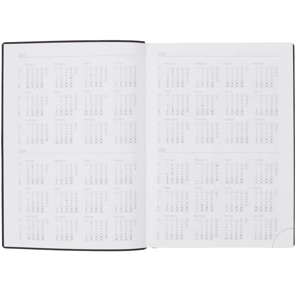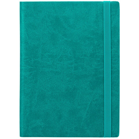Ежедневник с гибкой обложкой выполнен из материала Brand, морская волна II, и дополнен резинкой шириной 1 см, капталом и ляссе в цвет обложки.