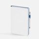Гибкая обложка, материал обложки — Soft Touch, белый BB и Latte, синий НН; материал петли для ручки — Nice Touch, синий НН. Срез обложки окрашен в синий цвет.