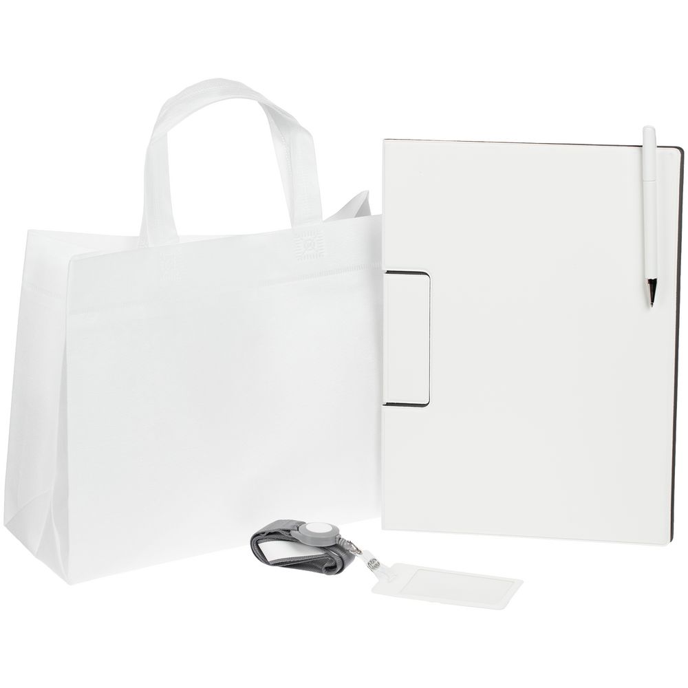 Лаконичный и строгий приветственный набор Devon Span содержит самое необходимое для нового сотрудника или участника профессионального мероприятия. Это папка-планшет и ручка — для комфортных записей и фиксации документов во время деловых переговоров или докладов, а также чехол для пропуска на ленте — для безопасности и идентификации — все в компактной легкой сумке.