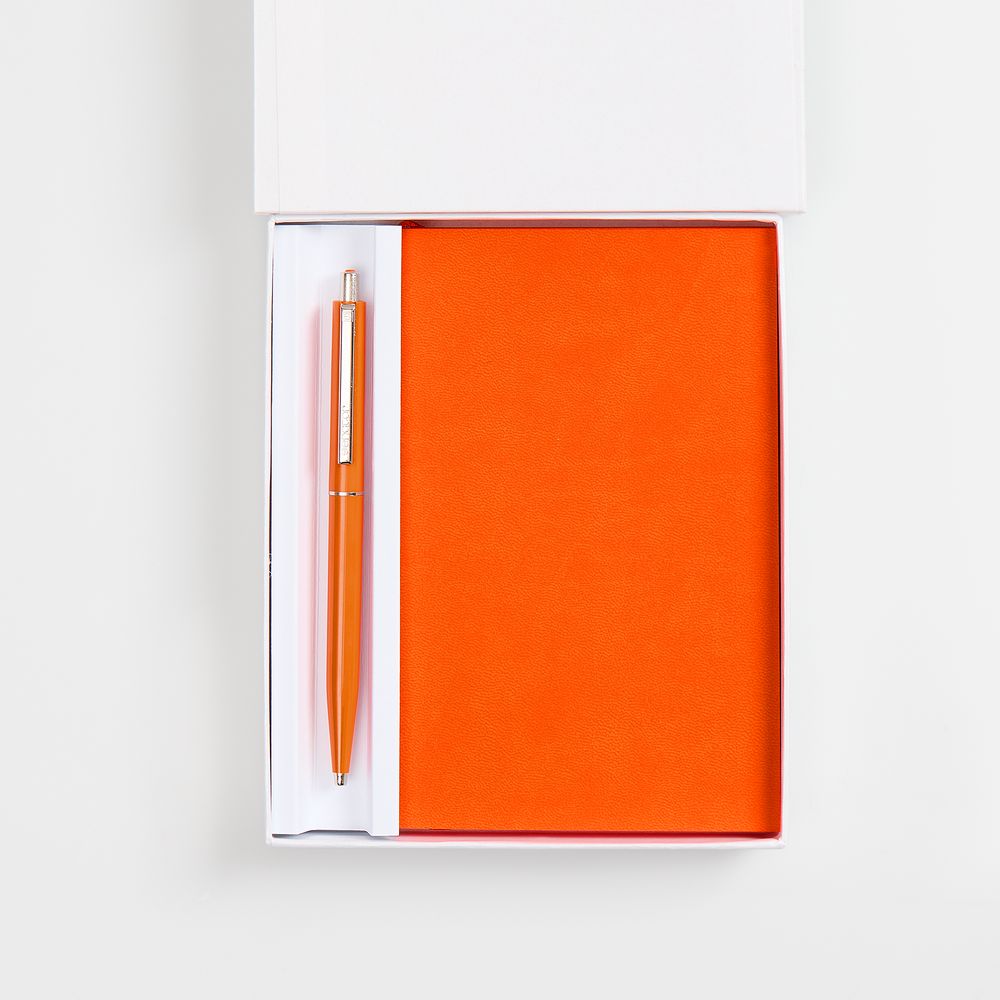Миниатюрный набор со стильным ежедневником в гибкой обложке с покрытием софт-тач и ручкой интересной формы. Все составляющие сложены в компактную коробку с ложементом, которая придает набору аккуратность.