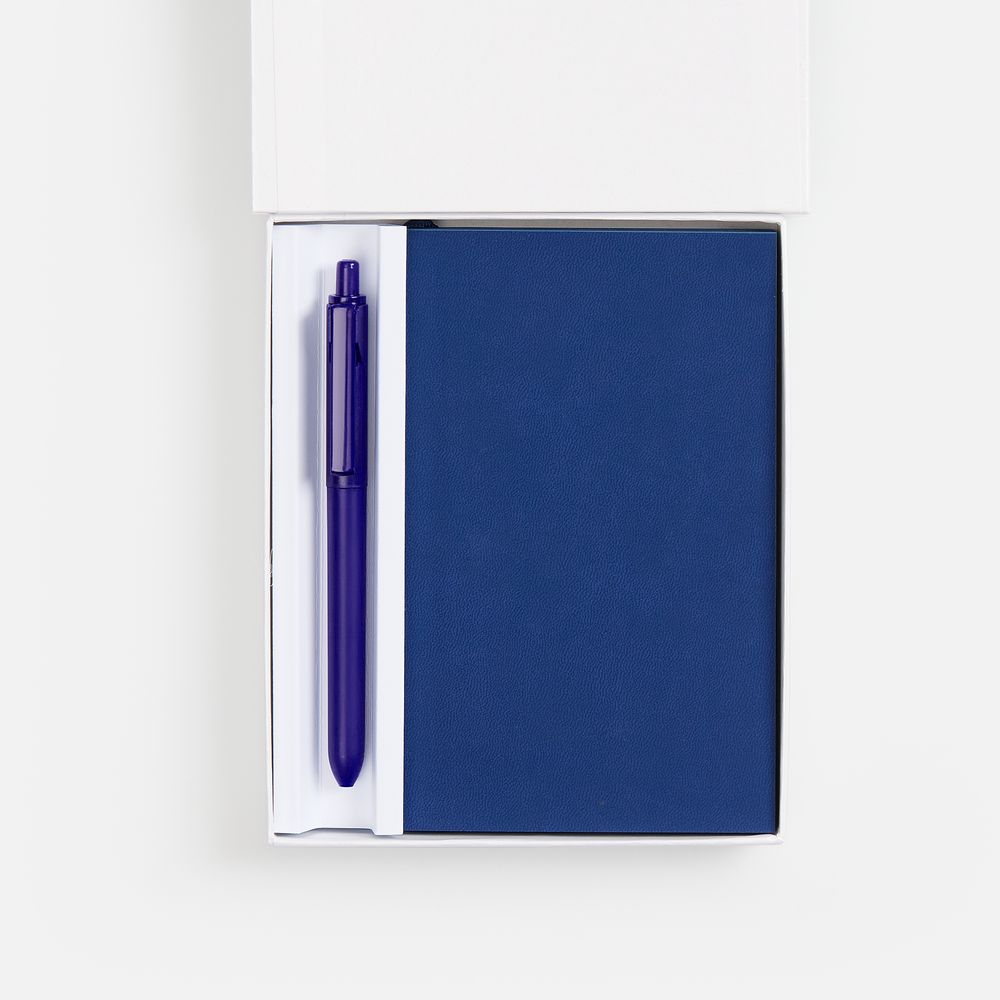 Миниатюрный набор со стильным ежедневником в гибкой обложке с покрытием софт-тач и ручкой интересной формы. Все составляющие сложены в компактную коробку с ложементом, которая придает набору аккуратность.
