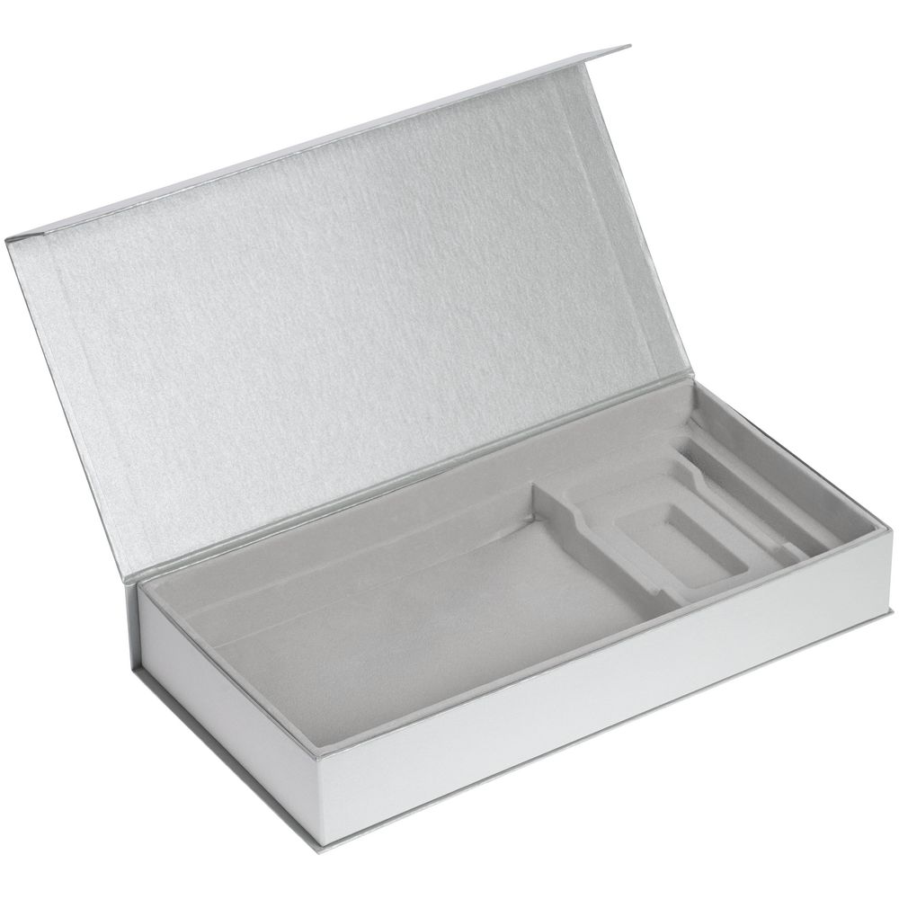 Коробка из переплетного картона, кашированного дизайнерской бумагой Majestic, с крышкой на магните и флокированным ложементом.