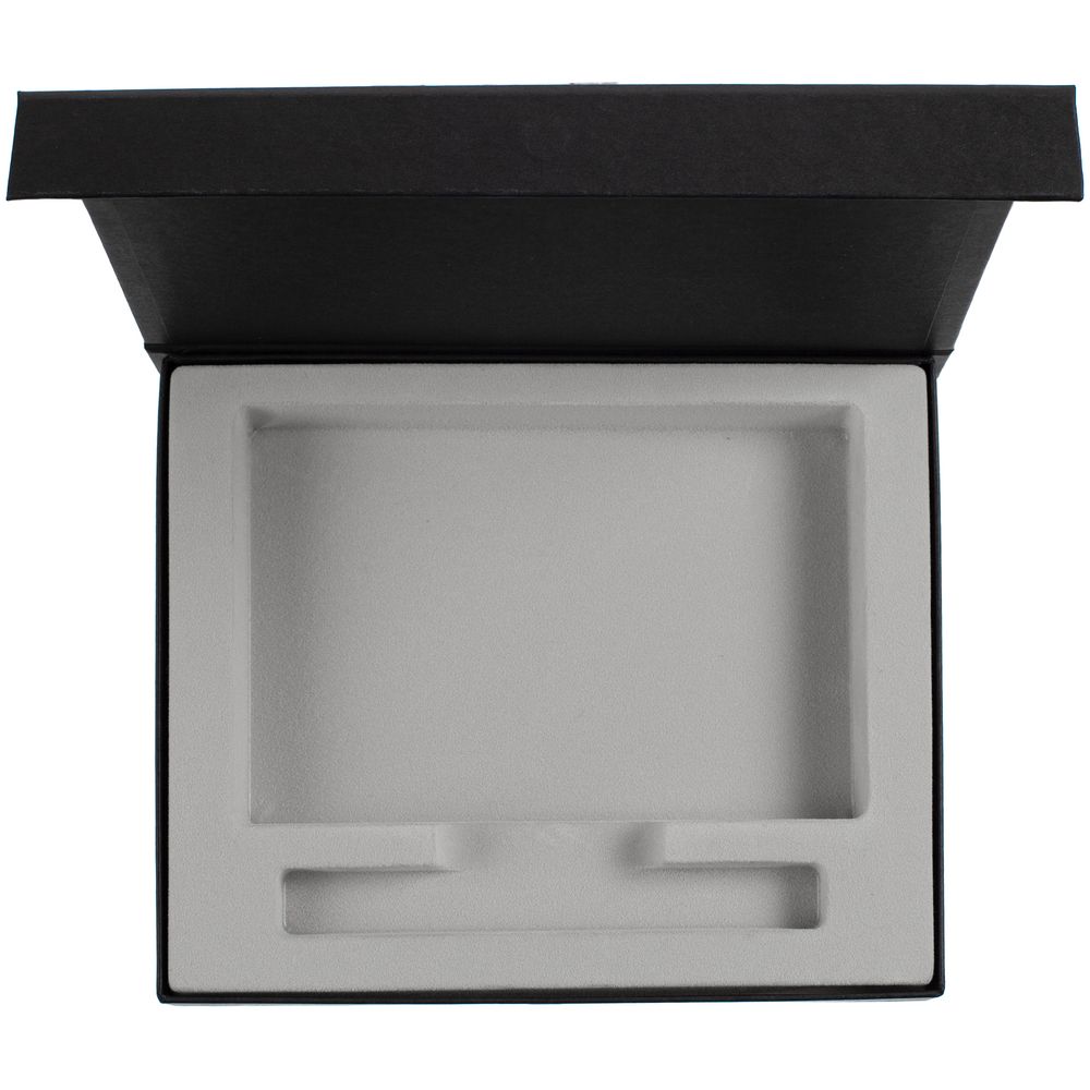 Коробка из переплетного картона, кашированного гладкой дизайнерской бумагой Magic, с крышкой на магните и флокированным ложементом. Подходит для блокнота...
