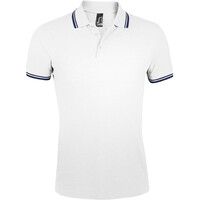 Рубашка поло мужская Pasadena Men 200 с контрастной отделкой, белая с синим